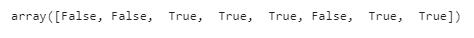 np.in1d(arr4, [1,2,5]) : 해당 원소들이 대상 배열에 포함되어 있으면 참의 결과값으로 출력합니다.