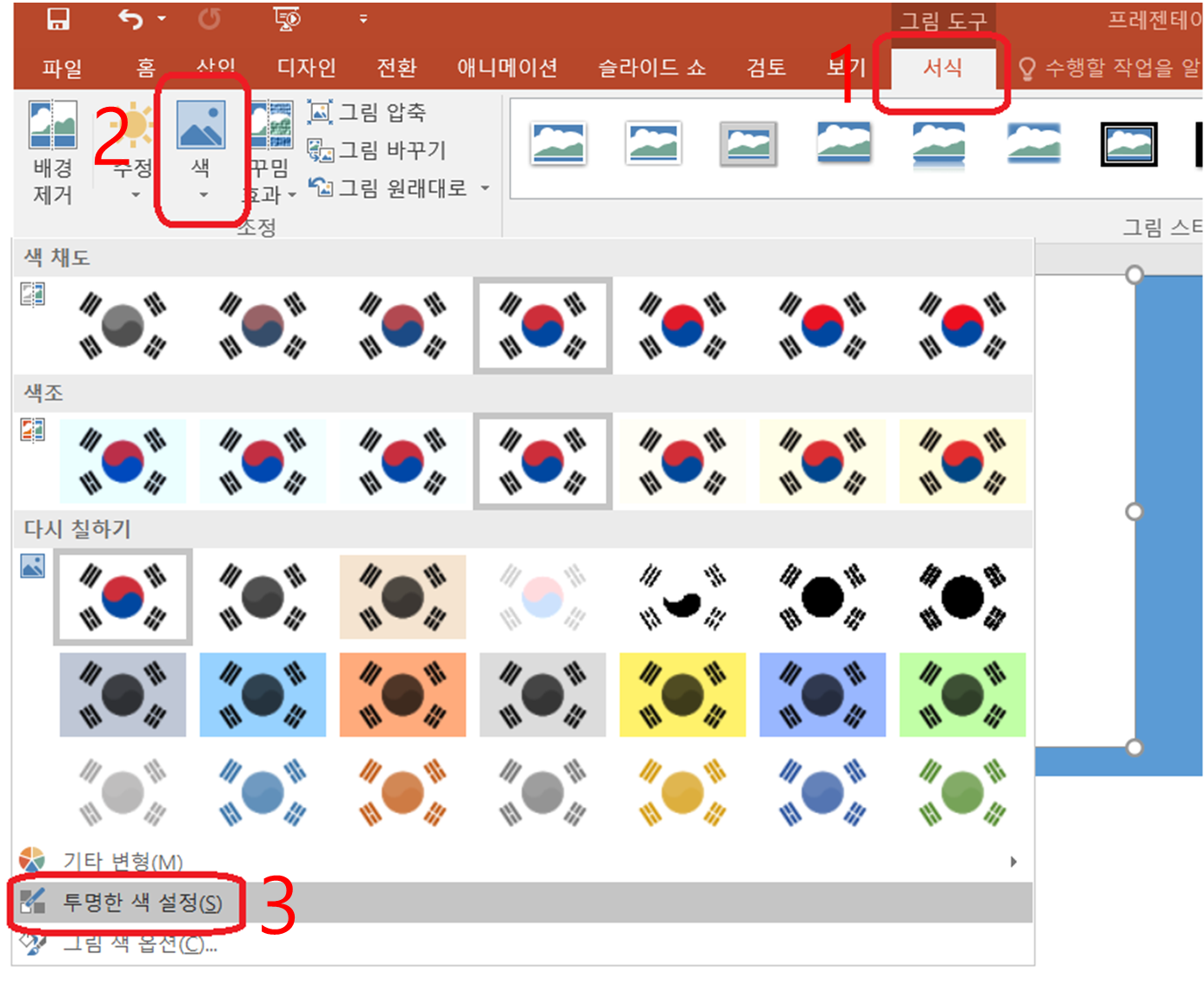 필자는 예시로 태극기의 흰 배경을 제거하였다.
