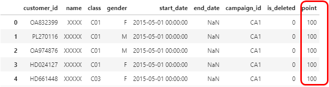 customer['point'] = np.zeros((4192, ), dtype=np.int32) + 101