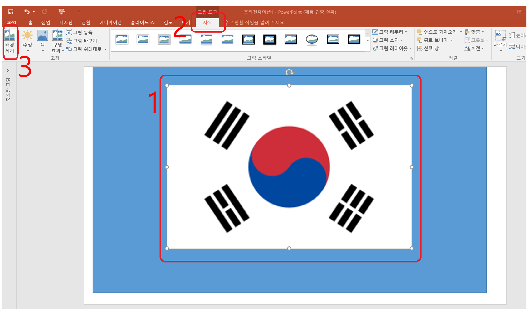 필자는 예시로 태극기의 흰 배경을 제거하였다.